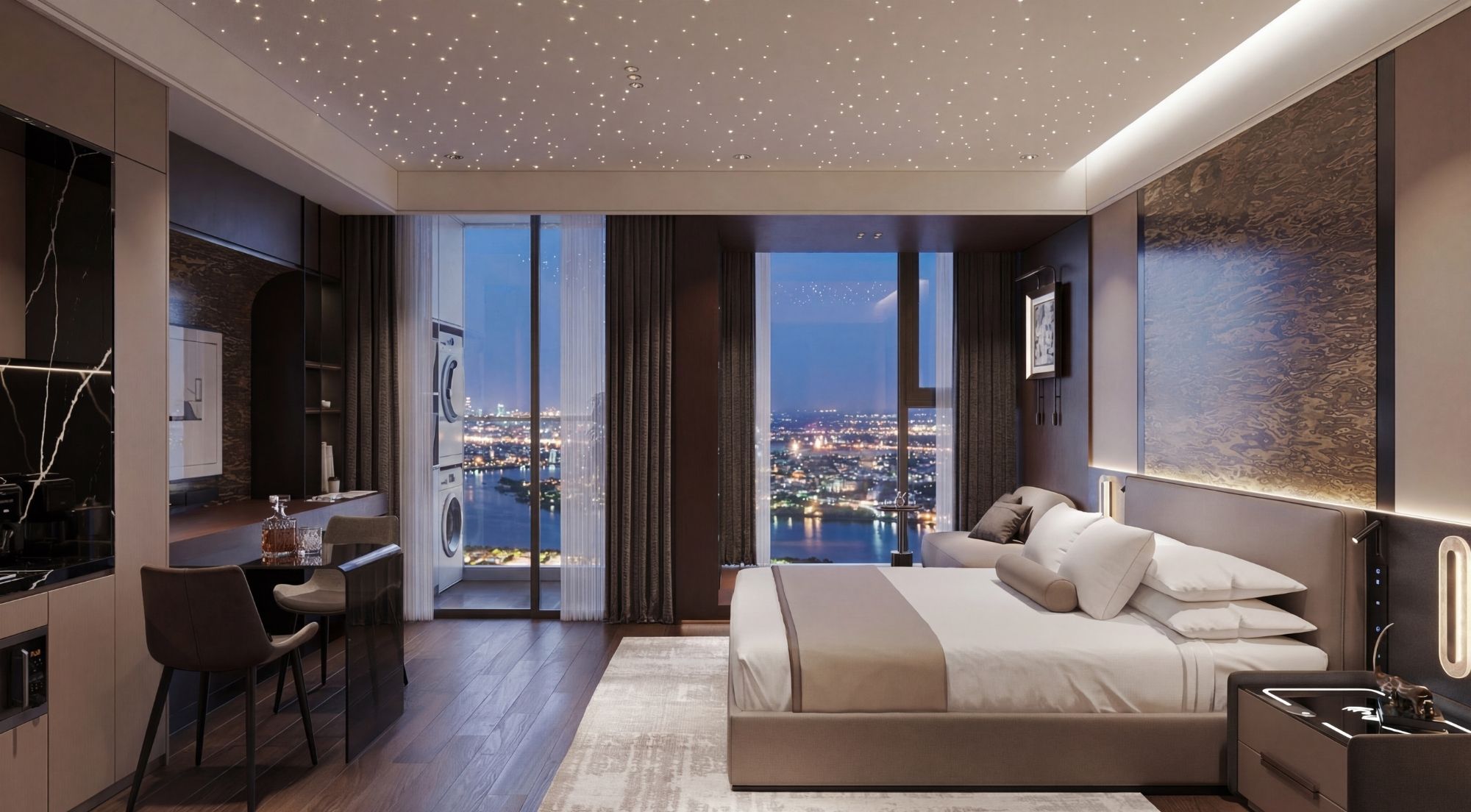 Các căn hộ sở hữu thiết kế khoáng đạt, tối ưu ánh sáng tự nhiên và tầm nhìn, đồng thời được bàn giao với nội thất cơ bản nhập khẩu châu Âu. Điều này giúp chủ căn hộ có thể đưa sản phẩm vào vận hành ngay với hình ảnh chuyên nghiệp, đồng bộ và dễ định vị trong phân khúc lưu trú cao cấp.