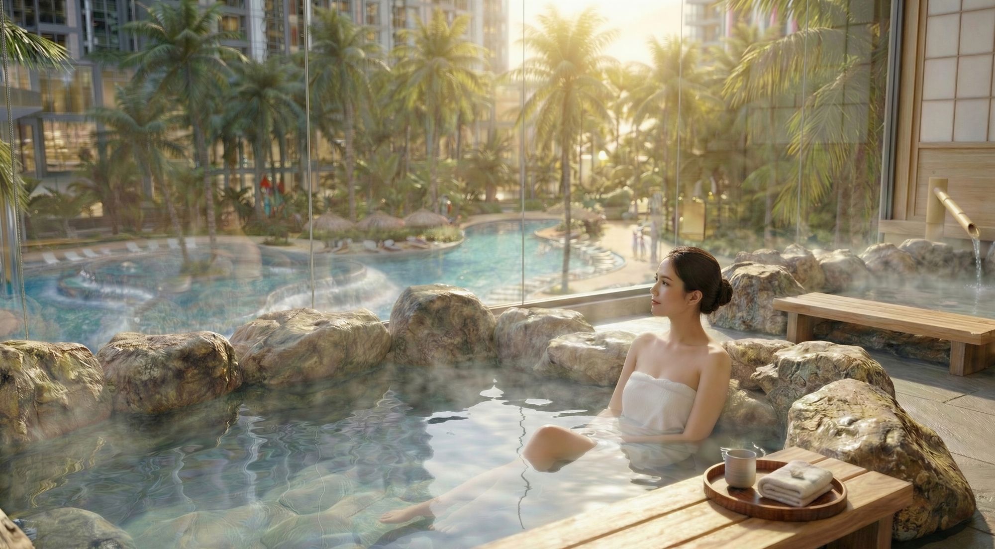 Nếu vị trí là yếu tố kéo dòng khách đến, thì hệ sinh thái khoáng nóng Alluvia City chính là lý do khiến họ ở lại lâu hơn và sẵn sàng chi trả cao hơn. Đây là một trong những giá trị độc bản giúp kinh doanh lưu trú tại căn hộ Alumi vượt ra khỏi khuôn khổ của mô hình cho thuê căn hộ thông thường.