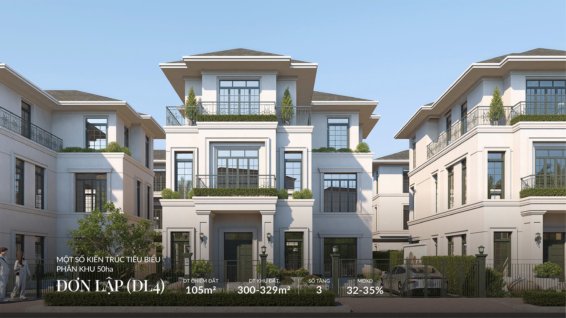 - Biệt thự đơn lập: Với diện tích rộng từ 300 m² trở lên, loại hình này mang đến không gian sống biệt lập, yên tĩnh, phù hợp với đại gia đình ba thế hệ. Mỗi căn biệt thự đơn lập đều có sân vườn và khoảng lùi hợp lý, đảm bảo sự riêng tư tuyệt đối. Đây là lựa chọn lý tưởng cho những ai đề cao sự thoải mái và muốn sở hữu một tổ ấm gắn liền với thiên nhiên.