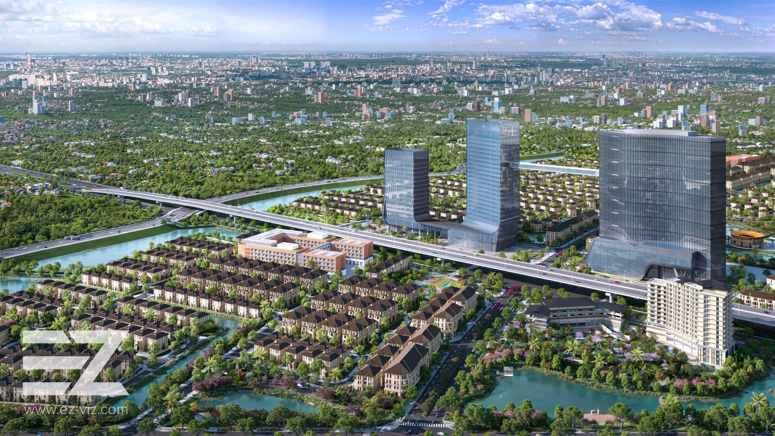 Toàn bộ dự án được quy hoạch với mật độ xây dựng thấp, tỷ lệ cây xanh – mặt nước lớn, nhằm tối ưu khả năng hấp thụ nhiệt, điều hòa vi khí hậu và giảm ô nhiễm môi trường.