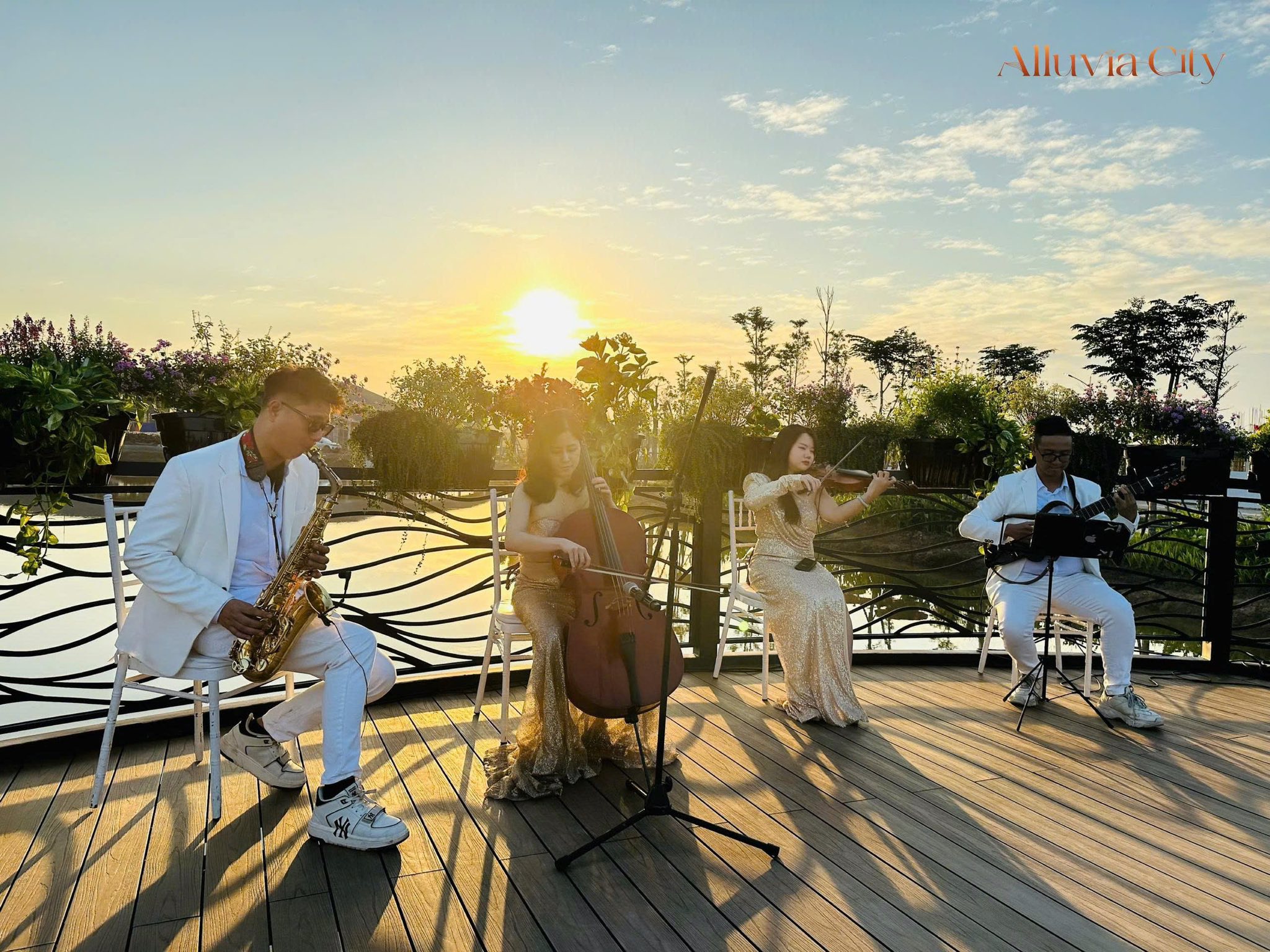 Điểm nhấn mở đầu cho buổi chiều cuối tuần chính là Mini show Sunset Breeze – nơi những giai điệu acoustic ngọt ngào vang lên giữa thiên nhiên trong lành. Trong không gian chan hòa nắng gió sông Hồng, tiếng đàn, tiếng ca cùng ánh chiều tà tạo nên một cảm xúc thư thái khó quên, như đưa ta rời xa mọi xô bồ của phố thị.