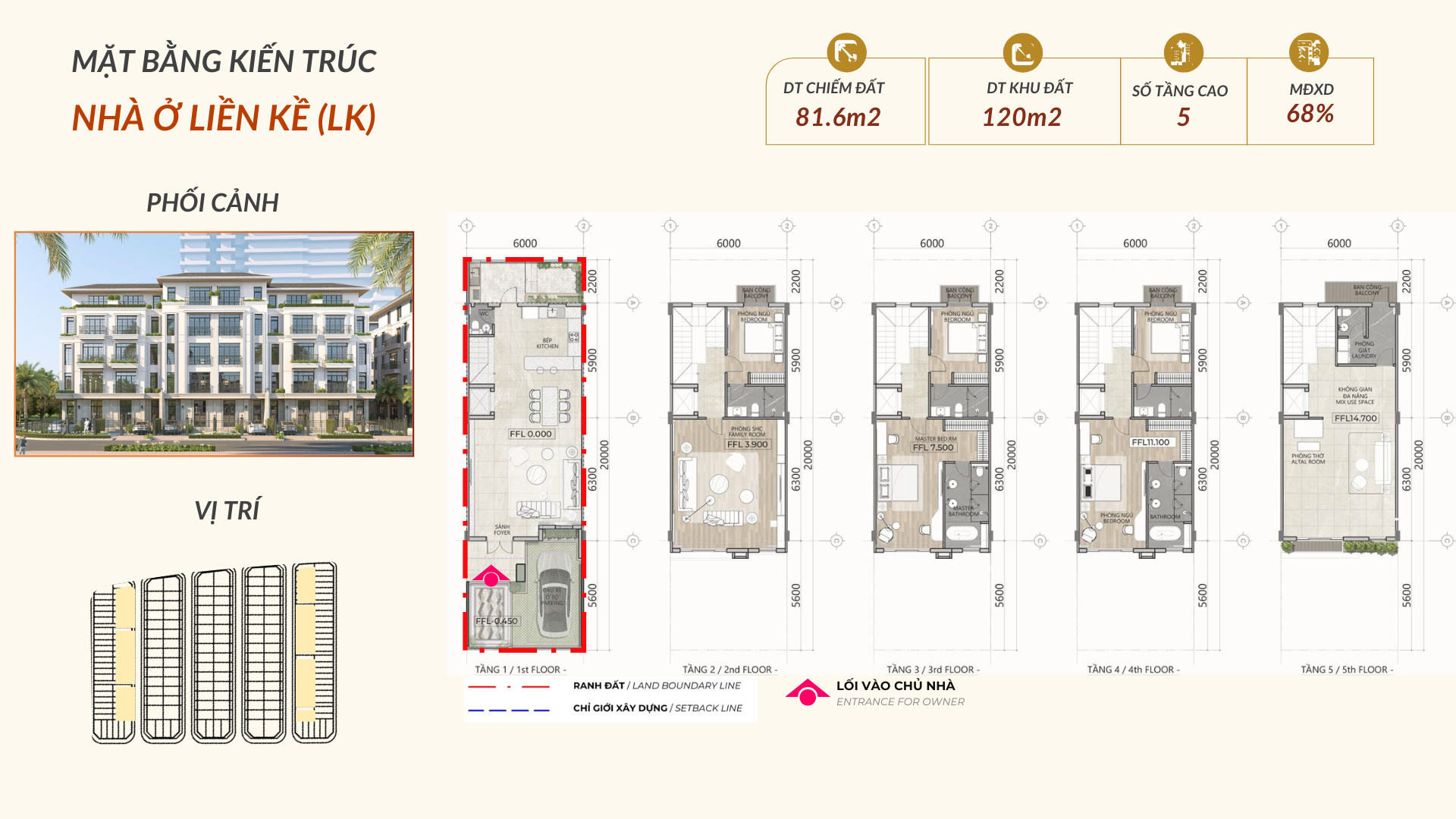 - Tầng cao tối đa: 5 tầng