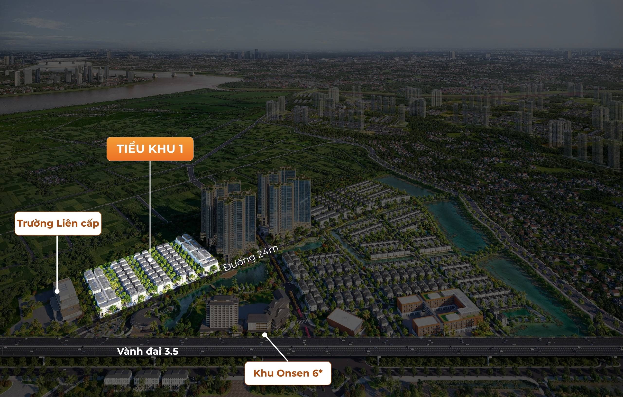 Tiểu khu 1 Alluvia Onsen có quy mô 7,3ha, sở hữu 203 căn thấp tầng bao gồm biệt thự và liền kề. Điểm mạnh của tiểu khu này là nằm trên trục đường 24m, kết nối trực tiếp ra tuyến đường vành đai 3.5 – một trong những tuyến hạ tầng huyết mạch của khu vực. Vị trí này giúp cư dân thuận tiện di chuyển tới trung tâm Hà Nội cũng như các tỉnh lân cận.