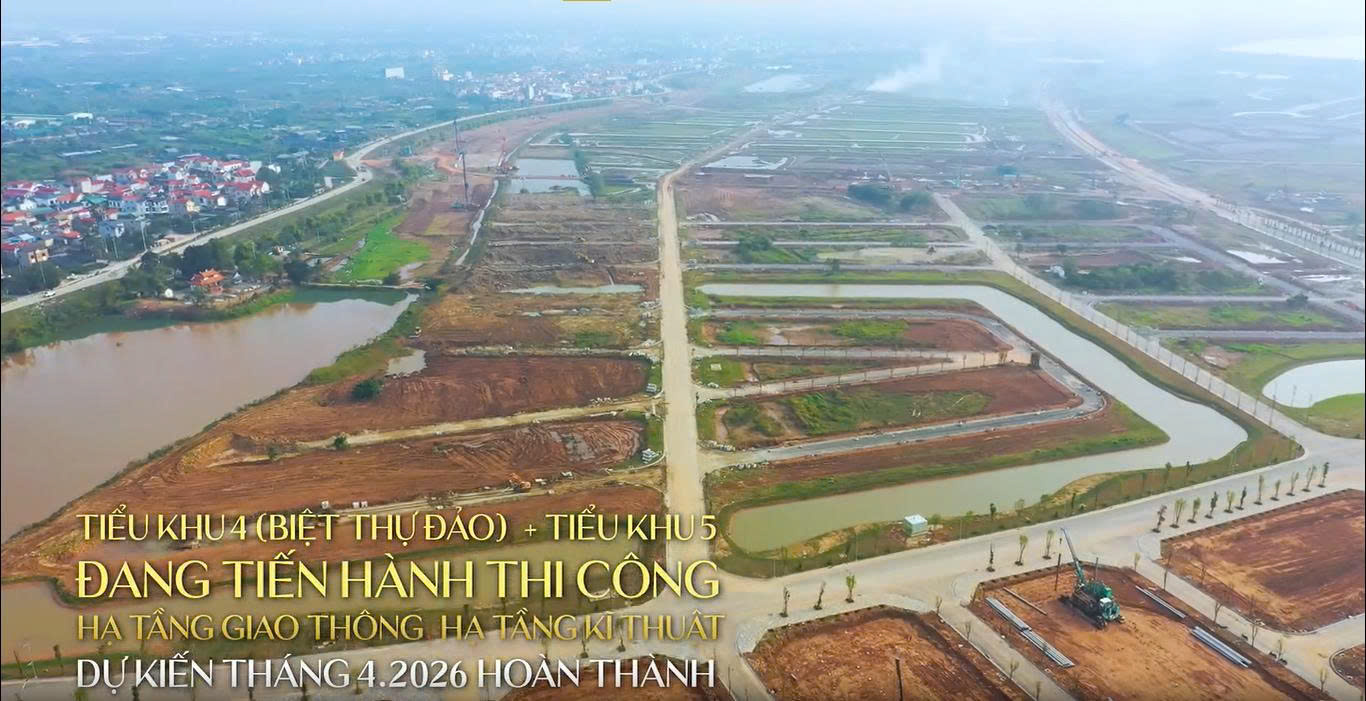 Tiểu khu 04 (biệt thự đảo) và tiểu khu 05 đang được triển khai thi công hệ thống đường giao thông và hạ tầng kỹ thuật. Đây là khu vực được đánh giá cao về tính biểu tượng và giá trị độc bản trong toàn bộ đại đô thị.