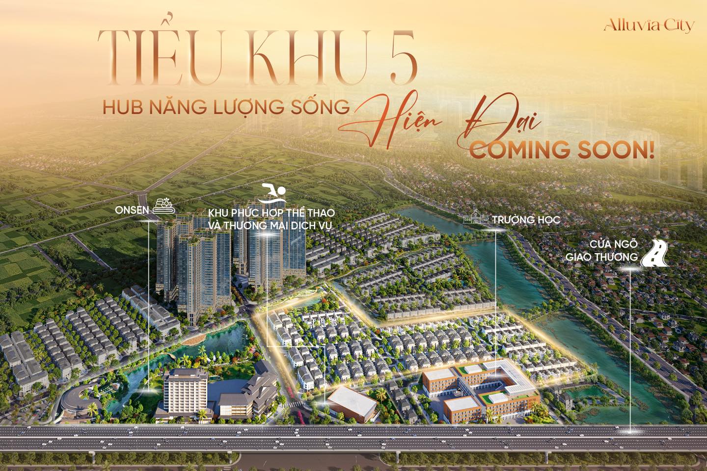 Là tiểu khu có diện tích lớn nhất tại phân khu Alluvia Onen, tiểu khu 5 được xem là “tọa độ vàng” – nơi hội tụ trọn vẹn tinh hoa của thiên nhiên, giao thương và phong cách sống hiện đại. Vị trí tiểu khu 5 Alluvia Onsen sở hữu mạng lưới kết nối hoàn hảo cùng không gian sinh thái khoáng đạt, đây không chỉ là nơi an cư lý tưởng mà còn là điểm giao thoa của năng lượng sống, thương mại và nghỉ dưỡng tại Alluvia City.