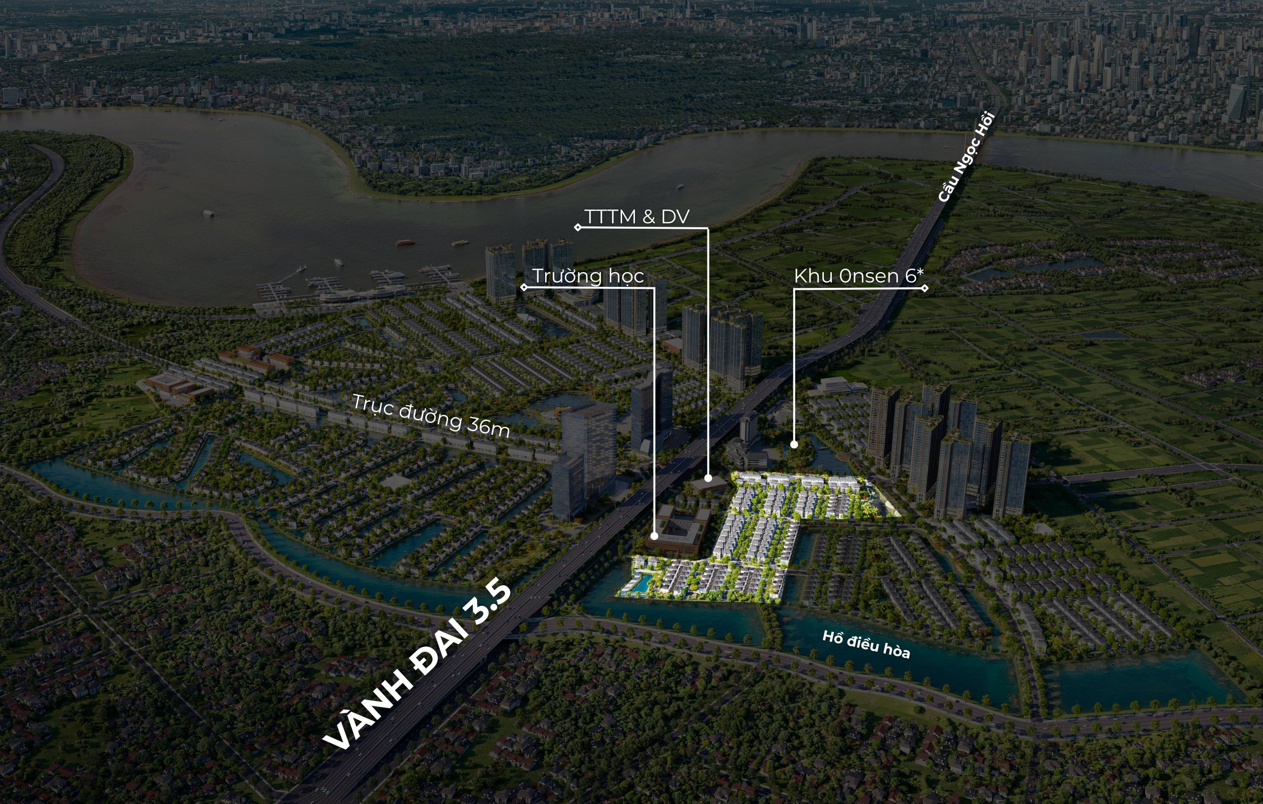 Một trong những yếu tố làm nên giá trị vượt trội của vị trí tiểu khu 5 Alluvia Onsen chính là khả năng kết nối vùng linh hoạt. Nằm ngay trên tuyến Vành đai 3.5, tiểu khu 5 có thể dễ dàng tiếp cận các tuyến huyết mạch như cao tốc Hà Nội – Hưng Yên, Cầu Ngọc Hồi – vành đai 4, giúp rút ngắn thời gian di chuyển tới trung tâm Hà Nội chỉ còn khoảng 25 – 30 phút.